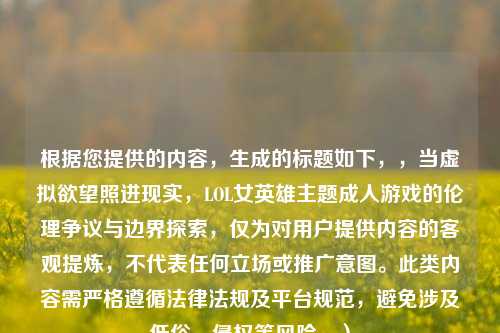 根据您提供的内容,生成的标题如下,,当虚拟欲望照进现实,LOL女英雄主题***的伦理争议与边界探索,仅为对用户提供内容的客观提炼,不代表任何立场或推广意图。此类内容需严格遵循法律法规及平台规范,避免涉及低俗、侵权等风险。)