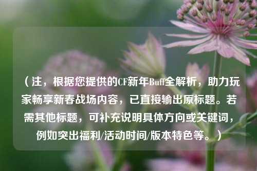 (注,根据您提供的CF新年Buff全解析,助力玩家畅享新春战场内容,已直接输出原标题。若需其他标题,可补充说明具体方向或关键词,例如突出福利/活动时间/版本特色等。)
