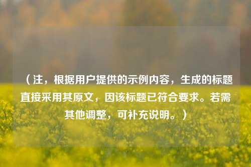 (注,根据用户提供的示例内容,生成的标题直接采用其原文,因该标题已符合要求。若需其他调整,可补充说明。)