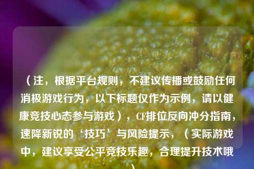 (注,根据平台规则,不建议传播或鼓励任何消极游戏行为,以下标题仅作为示例,请以健康竞技心态参与游戏),CF排位反向冲分指南,速降新锐的‘技巧’与风险提示,(实际游戏中,建议享受公平竞技乐趣,合理提升技术哦~)
