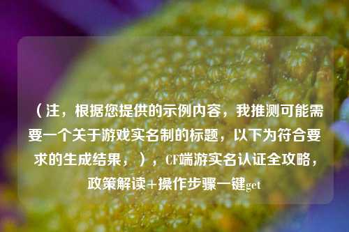 (注,根据您提供的示例内容,我推测可能需要一个关于游戏实名制的标题,以下为符合要求的生成结果,),CF端游实名认证全攻略,政策解读+操作步骤一键get