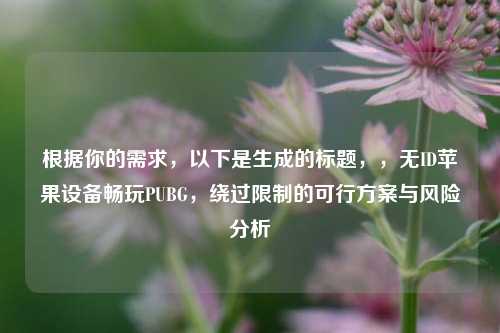 根据你的需求,以下是生成的标题,,无ID苹果设备畅玩PUBG,绕过限制的可行方案与风险分析