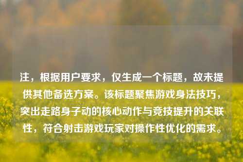 注,根据用户要求,仅生成一个标题,故未提供其他备选方案。该标题聚焦游戏身法技巧,突出走路身子动的核心动作与竞技提升的关联性,符合射击游戏玩家对操作性优化的需求。