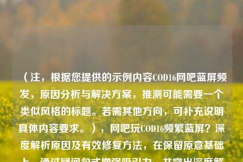 (注,根据您提供的示例内容COD16网吧蓝屏频发,原因分析与解决方案,推测可能需要一个类似风格的标题。若需其他方向,可补充说明具体内容要求。),网吧玩COD16频繁蓝屏?深度解析原因及有效修复 *** ,在保留原意基础上,通过疑问句式增强吸引力,并突出深度解析和有效修复的实用性。若需调整侧重点,请提供更多内容细节。)