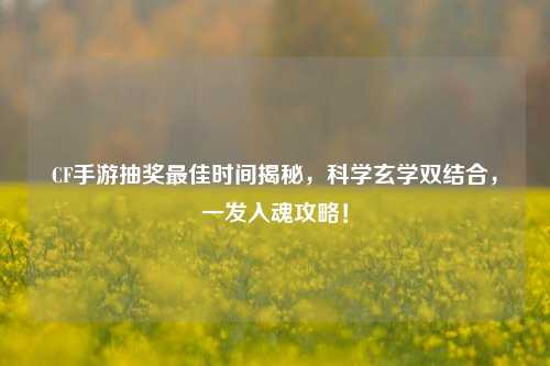 CF手游抽奖更佳时间揭秘,科学玄学双结合,一发入魂攻略!