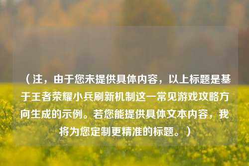 (注,由于您未提供具体内容,以上标题是基于王者荣耀小兵刷新机制这一常见游戏攻略方向生成的示例。若您能提供具体文本内容,我将为您定制更精准的标题。)
