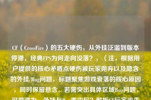 CF(CrossFire)的五大硬伤,从外挂泛滥到版本停滞,经典FPS为何走向没落?,(注,根据用户提供的核心矛盾点硬伤被玩家抛弃以及隐含的外挂/Bug问题,标题聚焦游戏衰落的核心原因,同时保留悬念。若需突出具体区域Bug问题,可微调为,外挂与Bug重灾区?解析CF玩家流失最严重的战区现状)