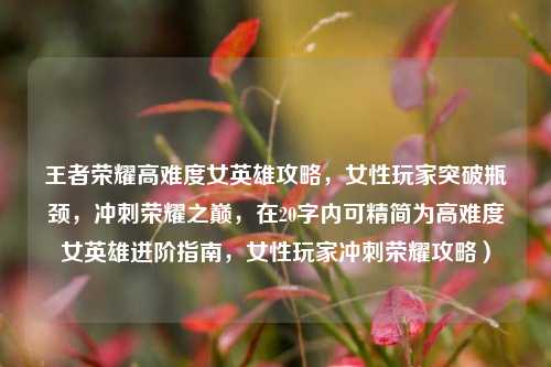 王者荣耀高难度女英雄攻略,女性玩家突破瓶颈,冲刺荣耀之巅,在20字内可精简为高难度女英雄进阶指南,女性玩家冲刺荣耀攻略)