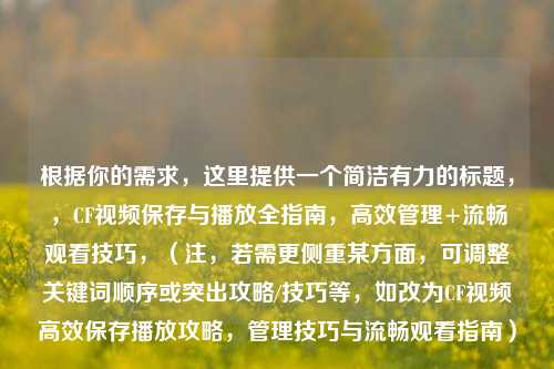 根据你的需求,这里提供一个简洁有力的标题,,CF视频保存与播放全指南,高效管理+流畅观看技巧,(注,若需更侧重某方面,可调整关键词顺序或突出攻略/技巧等,如改为CF视频高效保存播放攻略,管理技巧与流畅观看指南)