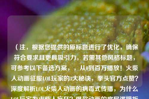 (注,根据您提供的原标题进行了优化,确保符合要求且更具吸引力。若需其他风格标题,可参考以下备选方案,,从0到百万播放!火柴人动画征服LOL玩家的3大秘诀,拳头官方点赞?深度解析LOL火柴人动画的病毒式传播,为什么LOL玩家为火柴人疯狂?爆款动画的底层逻辑拆解,请告知是否需要调整方向或补充关键词。)
