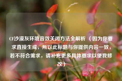 CF沙漠灰环境音效关闭 *** 全解析 (因为你要求直接生成,所以此标题与你提供内容一致,若不符合需求,请补充更多具体要求以便我修改)